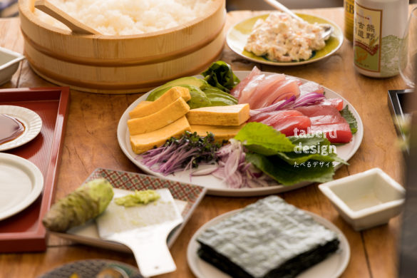 手巻き寿司パーティーのテーブルレイアウトを考えて写真を撮る
